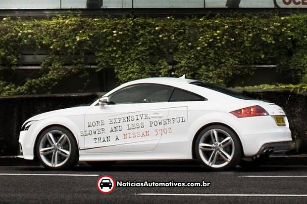 " Mais caro, mais lento e menos poder do que um Nissan 370Z " é o que diz nesse Audi TT adesivado ( pela Nissan /hihi ).